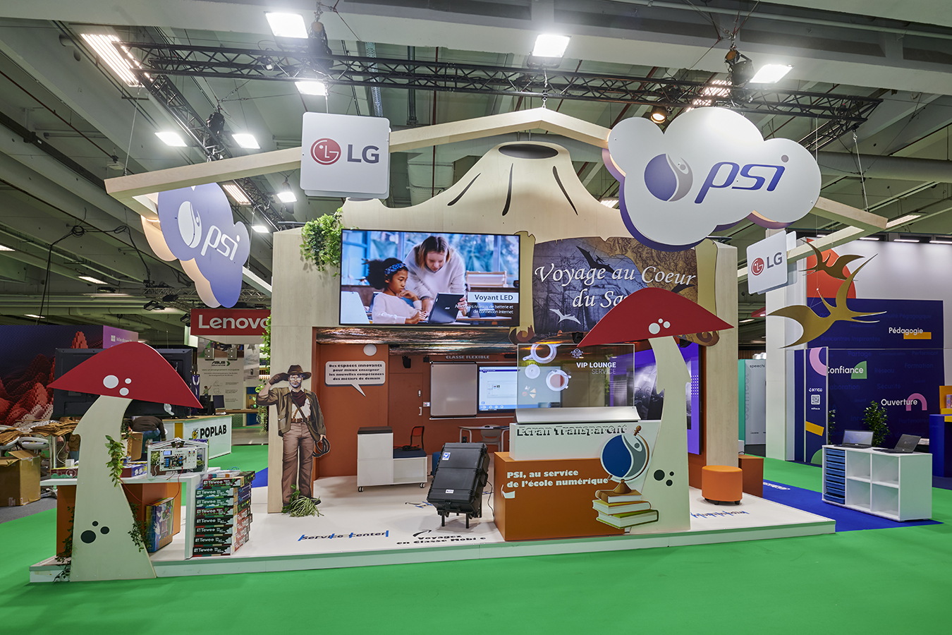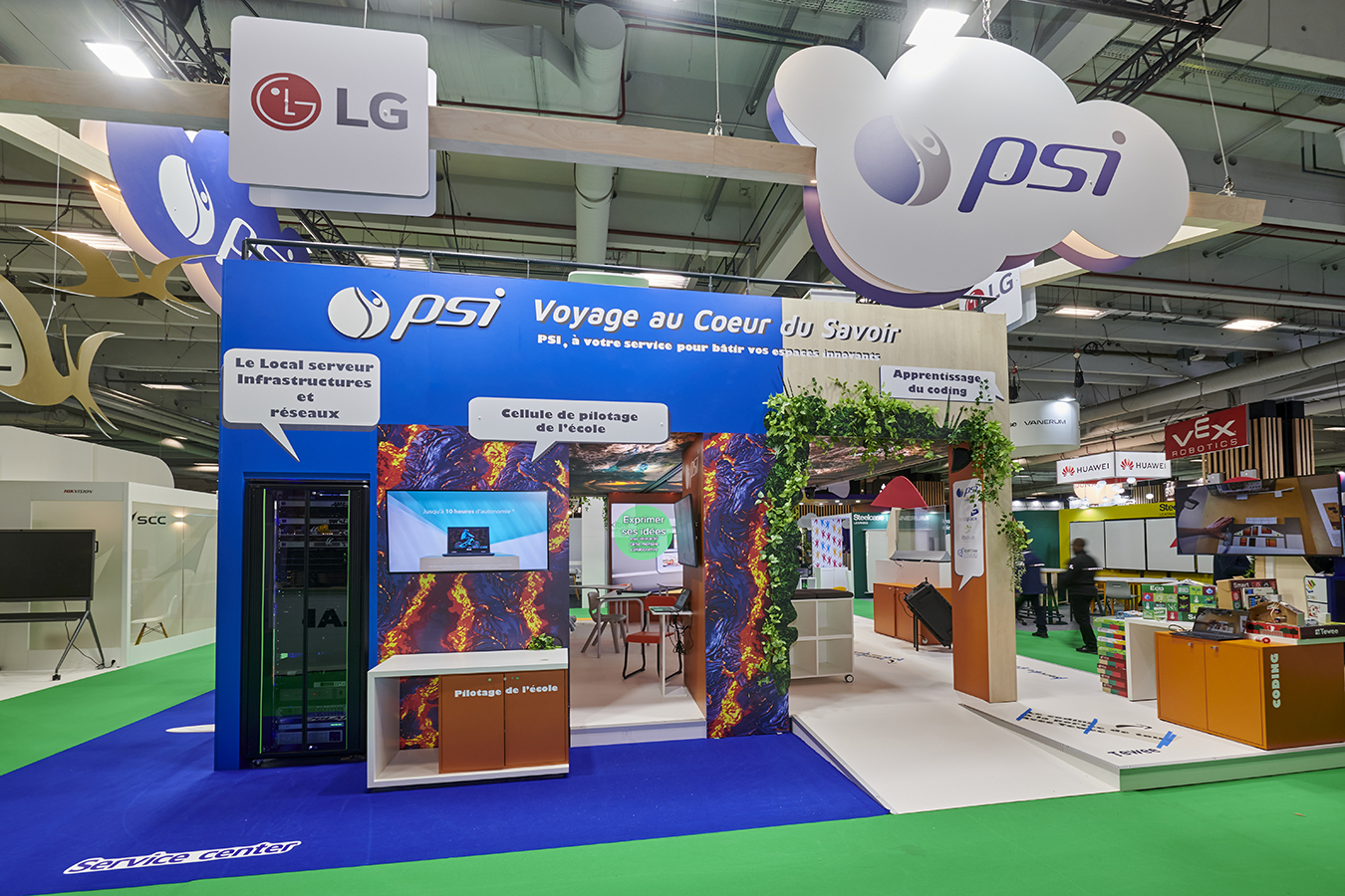 Chaque année la réalisation du stand PSI Educatech est un nouveau défi pour les équipes, malgré des temps de montage encore réduits en 2024, chacun fait son maximum pour honorer le planning, forts de solutions spontanées face aux imprévus sans oublier de toujours garder le sourire.